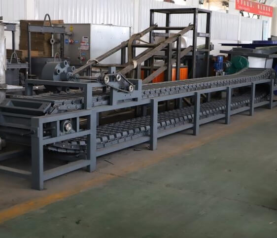 The main structure include: U-steel channel welded steel body, conveyor, speed-adjust motor, reducer, big & small chain wheel & chains, power distribution systems.